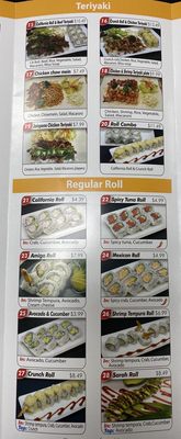 Oishi Teriyaki Sushi Menu In Paramount California Usa